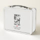 This is a standard metal lunchbox that appears to work just fine. We designed this box ourselves with an uploaded photo and custom text on the front and back. It looks absolutely beautiful except the front of the lunchbox is not centered like it shows in the photo. The print borders don't align with the inset flat part of the box where the preview photo online showed it perfectly centered in there. The back looks nice and centered though.