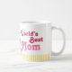 Show your love to your Mum with this World's Best Mum pink and yellow graphic elephants hug mug. Great for a mother's day gift. Unique illustration and design by Sarah Trett.