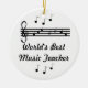 A great design for a music teacher. A white background with musical notes and a treble cleff in black. The message can be changed or left as is.