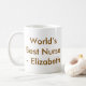 Celebrate an incredible nurse with this "World’s Best Nurse" coffee mug, complete with a custom name for a personal touch. Whether it’s for Nurse’s Day, graduation, or just to say thanks, this mug brings a smile with every sip. The clean and simple text design keeps the message front and centre, making it a thoughtful and practical token of appreciation. Add the nurse’s name to make it uniquely theirs.