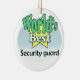Nice gift and surprise for world's best security! Image on a star ornament. Colors: green, yellow, blue and white.