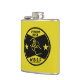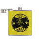The flask itself is fine. It’s a cheap flask, obviously bought in bulk, however am prepared to overlook that. Given that it is a personalized item, I would have liked to have seen gift boxing instead of the generic packaging. Terrible printing, and/or quality. It’s a cheap, tacky vinyl. It is not cut straight and is also applied in a way that it is overhanging the bottom, causing the glue to catch on items and it will eventually roll and tear, damaging the wrap.