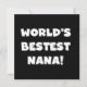 Black text and white text World's Best-est Nana T-shirts, mugs, hoodies, cards, tote bags, magnets, keepsakes, and other world's best nana gear. Great gifts for great grandparents!