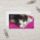 Irresistable calico kitten with piercing blue eyes nestled in a pink background. Perfect for vet, animal grooming, pet sitting and so much more! Or show your love for cats and use it for your personal card.