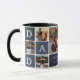 Customise this unique mug with 5 square photos arranged in a grid collage layout. Featuring "Dad" on navy blue squares and additional space for a custom message. Keep "World's Greatest" as is or change to your custom endearment. All colours can be changed. These are Father’s Day gifts that are perfect for any dad. A gift that he will treasure for a lifetime! Can be customised for any moniker - papa, pépé, grandad, grandpapa, grand-pére, grampa, gramps, grampy, geepa, paw-paw, pappou, pop-pop, poppy, pops, pappy, nonno, opa, baba, abuelo, tutu, saba, lolo etc.).