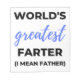 World's Greatest Farter I Mean Father design. This is a short sentimental quote which is great as an appreciation gift for Fathers or Father figures. Also suitable as a general father gift for Father's Day, Birthday or Christmas.