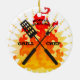 Colourful curling flames on this firey grilling Christmas ornament with grill utensils for your favourite grill chef or meat lover.