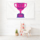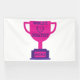 This banner features the words "World's Greatest Mother" displaying a yearbook bold print font with purple letters plus a winners wreath with number 1 in the centre over a pink coloured flat style cup trophy on a purple base in this Mother's Day theme. This banner has single side printing outdoor safe measures 6"x10" made with an elegant matte finish and is both fade and tear resistant for Indoors or outdoor use great for advertise anything, from birthdays to graduation, weddings to anniversaries. Hemmed and thermally welded edges for neat finish outdoor banners can be bought with metal grommets.