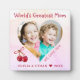 Surprise your mum with a special gift that shows your appreciation and love. Our worlds greatest mum heart photo template plaque is the perfect way to say "we love you." With a modern watercolor design and trendy bow and cherry accents, this unique gift is ideal for Mother's Day or her birthday. Let her know she's the best mum ever with this heartfelt present.