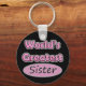 Leuke sleutelhanger voor de wereld's beste zus in de hele wereld! Het zijn roze en zwarte letters met een zwarte en witte rand eromheen.