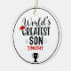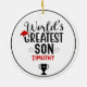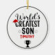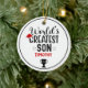 Our "World's Greatest Son" Ceramic Ornament, the perfect gift to show your appreciation and love for your cherished family member! This beautiful ornament serves as a heartfelt reminder of the special bond you share with your son. Thoughtful Gift: Show your son that he's not just family, he's the world's greatest. This ornament is a meaningful gift for birthdays, holidays, or just to express your love and admiration. Easily add name with our easy template.