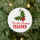 Christmas Ornament for your favourite teacher that has red berry holly and the words World's Greatest teacher.