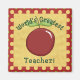A square magnet with a red background and yellow polka dots. In the centre is the traditional red apple and the text "World's Greatest Teacher". This magnet would make a nice teacher appreciation thank you gift.