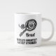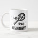 World's greatest tennis racket stringer extra big Giant Coffee Mug. Racket and ball string design. Also fun for player, coach, shop, business owner, store. Sporty Birthday gift ideas for men and women. Add your own personalised name. Extra large jumbo size mug. Black and white double sided print.