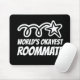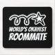 World's Okayest Roommate mouse pad gift idea. Fun black and white typography mousepad gift for him or her. Funny computer accessories for world's greatest housemate, best flatmate, roomie, college dorm room mate, student, study friend, colleague, partner, boyfriend, girlfriend, bedfellow, bunkmate, buddy, classmate, co worker, colleague, schoolmate, pal, spouse etc. Black and white design with humourous saying / expression and star. Simple bold typography letters template design.