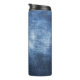 Worn denim fabric, textured background. thermal tumbler