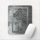 Worn old chrome looking Celtic Cross in a Celtic Knot Frame.