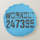 Worn out and scratched text Workout 247365 blue Round Cushion