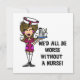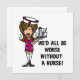 A cute nurse design featuring a brown haired nurse with a tray with water and a pitcher and text that reads We'd All Be Worse Without a Nurse on nurse T-shirts, bags, mugs, stickers, cards, magnets, and other nurse apparel and gifts.