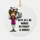 A cute nurse design featuring a brown haired nurse with a tray with water and a pitcher and text that reads We'd All Be Worse Without a Nurse on nurse T-shirts, bags, mugs, stickers, cards, magnets, and other nurse apparel and gifts.