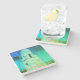 The coasters are gorgeous, a quality feel and heavy weight. They look like a precious archeological find. A rustic stone juxtaposed with a modern floral black and white print. I like the way the print goes slightly imperfect on the cut stone edges giving them a kind-of natural beauty.