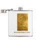 The flask itself is fine. It’s a cheap flask, obviously bought in bulk, however am prepared to overlook that. Given that it is a personalized item, I would have liked to have seen gift boxing instead of the generic packaging. Terrible printing, and/or quality. It’s a cheap, tacky vinyl. It is not cut straight and is also applied in a way that it is overhanging the bottom, causing the glue to catch on items and it will eventually roll and tear, damaging the wrap.