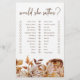 This elegant 'Would She Rather' bridal shower game features a beautiful real gold foil frame and hand-painted boho watercolor burnt orange and terracotta leaves, cream and beige dahlias, and beautiful rust-coloured roses on a white background. Find matching items in the Bridal Shower Autumn Romance Collection.
