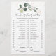 Would She Rather Bridal Shower Game. This design features an illustration of eucalyptus foliage and golden leaves in watercolor style. On the top of the card - gold effect confetti. The text "Would she Rather" is written in script font with joined heart - keys.