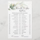 Would She Rather Bridal Shower Game. This design features an illustration of green and gold foliage in watercolor style. On the top of the card - gold effect confetti. The text "Would she Rather" is written in script font.