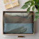 This design features a painting by the British symbolist artist George Frederick Watts (1817–1904). It depicts a heron that has been wounded before it has fallen out of the sky and landed on the ground. The bird is clearly badly injured. The heron is crumpled on the floor with its neck twisted and its clawed feet up in the air. Its mouth is wide open, as though it is screeching in agony. Its wings are spread, but the bird no longer seems to be capable of flight. The heron is in a desolate landscape, but there is a man riding a white horse in the background: he is looking up at the sky, as though he had heard the cries of the heron before it feel to earth. The original artwork was painted by G.F. Watts in 1837.