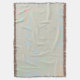 Woven blanket displayed in two orientations, horizontal and vertical. Features a subtle geometric pattern with fringed edges, soft and cozy appearance.