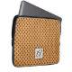 Simple yet decorative, this design of graphically woven rattan adds the personal touch to your laptop sleeve! The main colour is yellow, and the solid dark brown background can be recolored by you. Change this product's base colour to play with new effects! The custom initial is placed on a light square with black border. Text can easily be customised, and the entire monogram can be repositioned or removed. Also text font, size and colour can be adjusted.