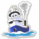 Cartoon freighter is surprised and excited