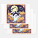 Fantastic spooky Halloween. A big Moon with friends ghosts, pumpkins and bats.