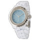 You will look all kinds of sharp wearing this blue-grey watch with dark blue numbers and a white, rhinestone band.