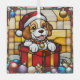 Wrapped Christmas Puppy Faux Stained Glass Tree Decoration