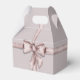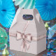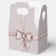 An adorable baby pink background with a watercolour dusty pink bow wrapped right around this favour box.