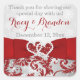 This elegant 1.5" square red, silver grey floral FAUX glitter damask pattern wedding favour thank you sticker or envelope seal has a background of assorted white snowflakes on it and a PRINTED red ribbon and bow with a pair of diamond jewels and FAUX glitter joined hearts on it that matches the winter wedding invitation shown below. You can change the text to say whatever you want, and you can also change the sticker size and/or shape, although for best results, please email me to change the shape. If you require any other matching items in this design, please email your request to niteowlstudio@gmail.com.