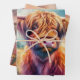Celebrate the wild and whimsical with RHDesigns by 2ChattyChicks. This 29x19 rolled wrapping paper features three artistic Highland cow prints, each set in a vibrant field of florals with expressive faces and scenic backdrops.