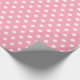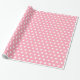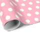 Gift wrapping paper shown in a cute pink and white polka dots print, shown in glossy.