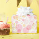 Wrapping paper is shown with a pink circles print.