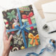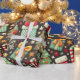 seamless pattern with festive icons like wrapped gifts, Christmas trees, candy canes, and stars. Perfect for holiday-themed designs with a joyful, vibrant style.
