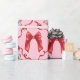 Add a playful twist to your holiday gifting with this pink Christmas bow and ribbon wrapping paper. This cheerful print features a soft pink background decorated with glossy red satin bows, candy-stripe gift toppers, curling decorative ribbons, and a scattering of snow-dust texture for a festive touch.