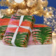 Happy winter holidays special gift wrap with watercolor green holiday tree with hearts.