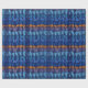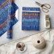 Digital art repeating pattern of gold and various shades of blue abstract lines and stripes, styled for Hanukkah season.