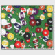 Rack 'em up! This delightfully whimsical design is computer-generated layers of various-sized billiard balls . . . from the solid white cue ball to the burgundy-striped 15, this terrific wrapping paper repeats the pattern every three feet. Whether it's his birthday or Father's Day, this it the crowning touch on your wonderful gift . . . and you have so many options for ribbons and bows!