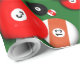 In the 19th century a poolroom was a horse race betting parlour. Pool tables were installed so the bettors could pass time between horse races. Billards, or pool, is the descendant of a game similar to croquet that was played in 15th-century Europe. Though we don't know for sure, it is strongly suspected that billiards came to America with Dutch and English settlers. By the 1700's, skilled cabinet makers were crafting beautiful tables, though the equipment was, otherwise, quite primitive. Fifteen-ball pool came on the scene in the late 1800's and grew in popularity through the 1940's. Billiards was revived in 1961 with the release of the movie THE HUSTLER. It enjoyed another surge in the mid 1980's with the release of the movie sequel, COLOR OF MONEY. Since that time, there has been an evolution of the environs in which we find pool tables -- they're in restaurants and night clubs and sports bars, allowing pool to find a modern audience and new generations of enthusiasts. This marvellous design is layers of billiard balls in varying sizes for greater depth. They are scattered all over a "green felt" backdrop.