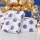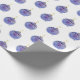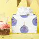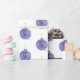 Holiday ornament in blue is tiled across paper. Ink drawing of a round tree decoration with "Peace on Earth" beneath 3D looking arches that support the "roof" of the orb. Golden hook at top of ball. Original artwork by John Alexander Muir.