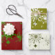 Wrapping Paper Flat Sheet Set of 3 Red & Green, Cream & Green, Green & Cream