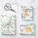 Dino Party Cute Dinosaur Birthday Boy Name & Age Wrapping Paper
